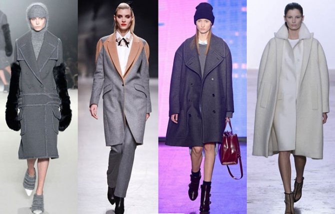 До сих пор в моде пальто в стиле оверсайз. Оно скрывает фигуру своей обладательницы. Модели в стиле оверсайз имеют глубокие карманы, прямые линии, большой воротник, широкие рукава и лацканы. Модели в стиле оверсайз представлено в коллекциях Vivienne Westwood, Nina Ricci, Badgley Mischka, No.21, Chanel, Balenciaga.